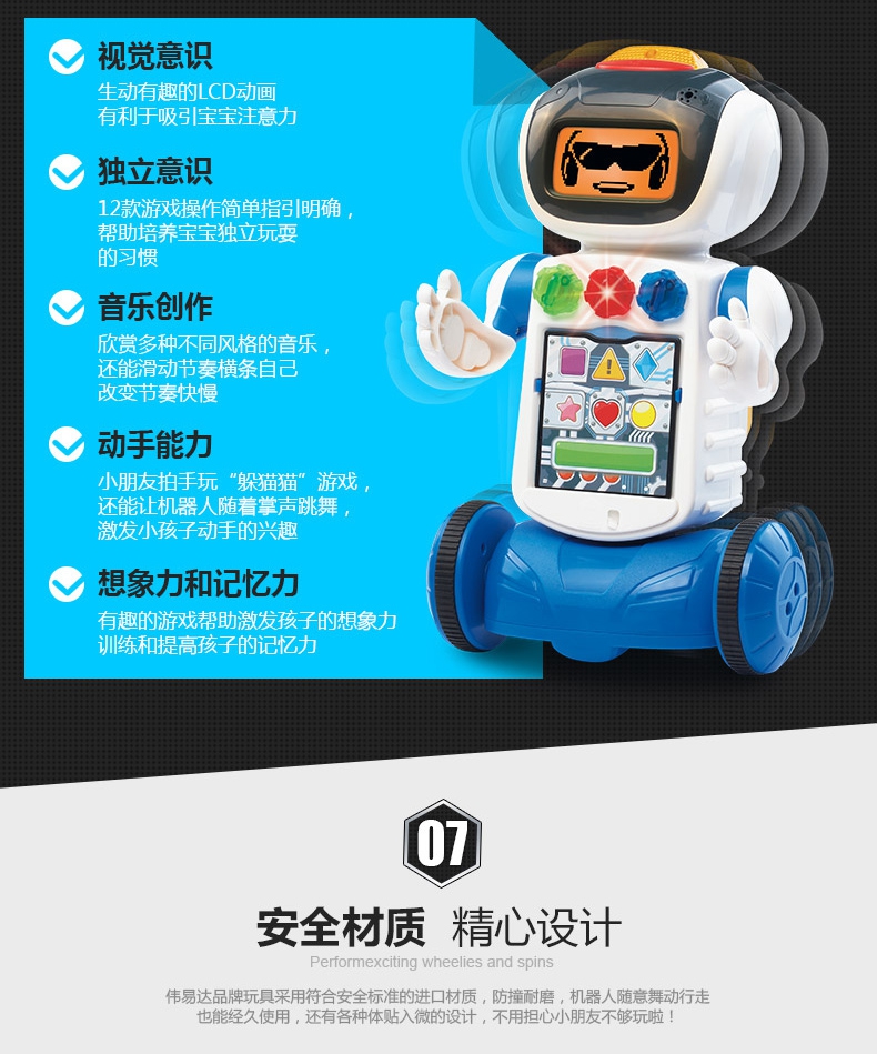 玩具特点:机器人长时间无人操作后会自动关机,省电节能