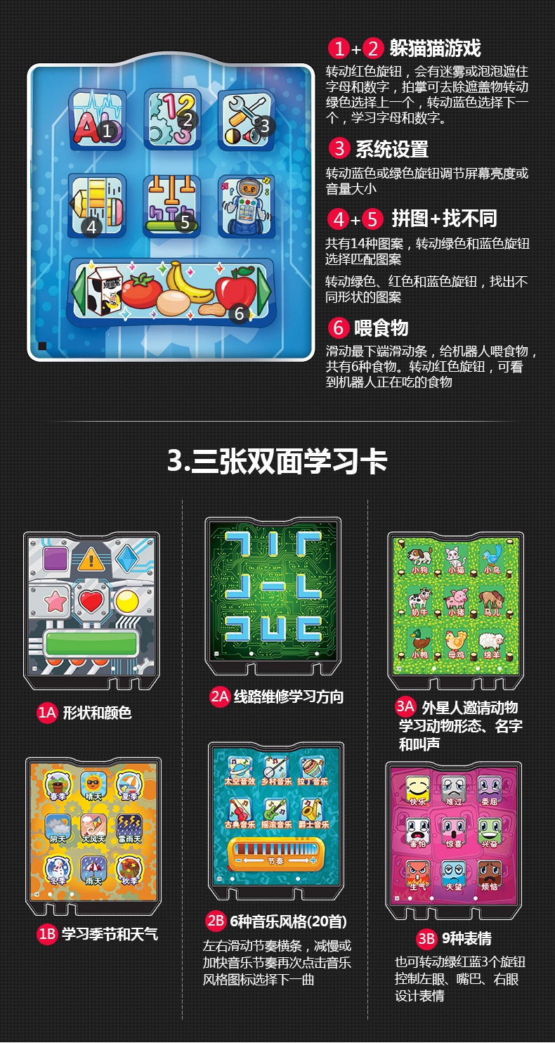 内置6款游戏+6款拓展游戏,丰富的游戏让宝宝大开眼界