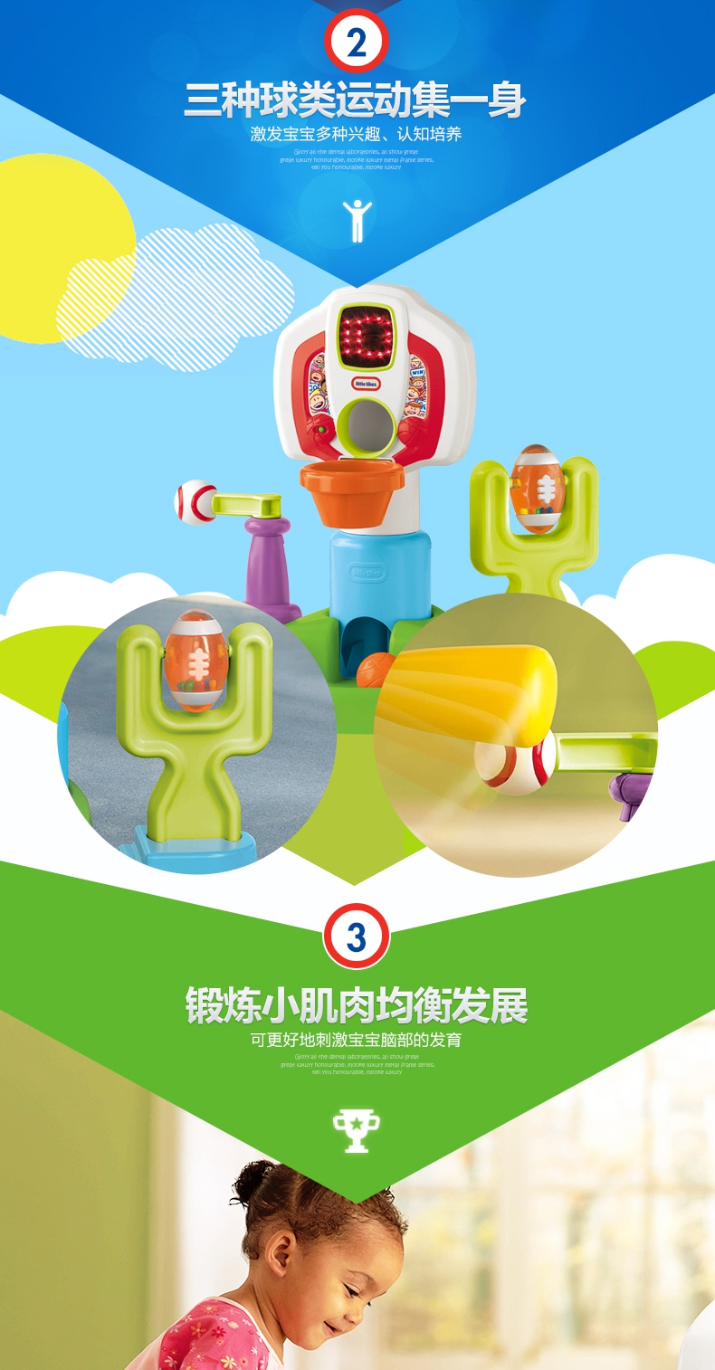 玩具特点:三中球类运动激发宝宝多种兴趣、认知能力,