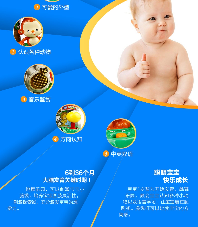 玩具特色:跳舞乐园可以教宝宝认知方向,还可以从小