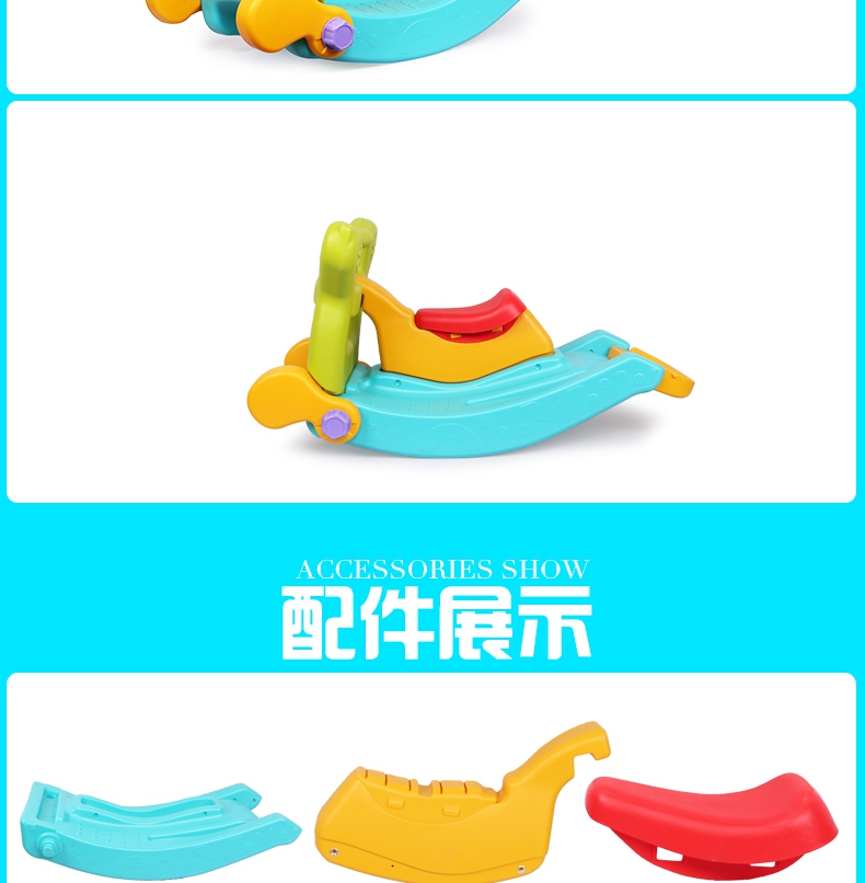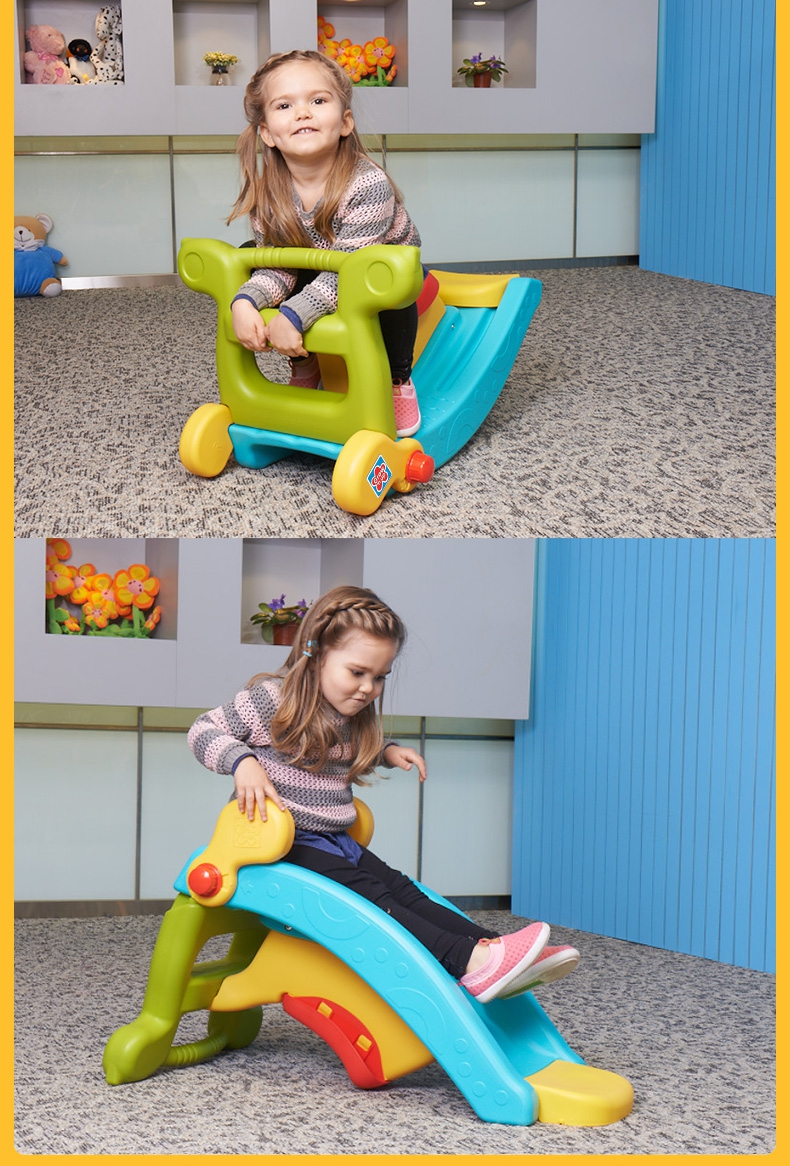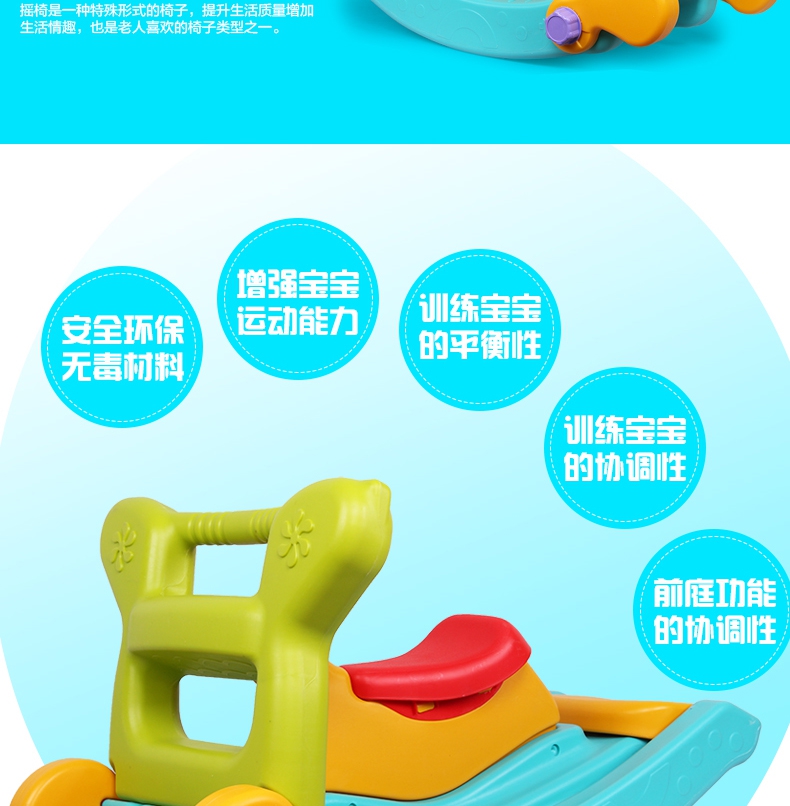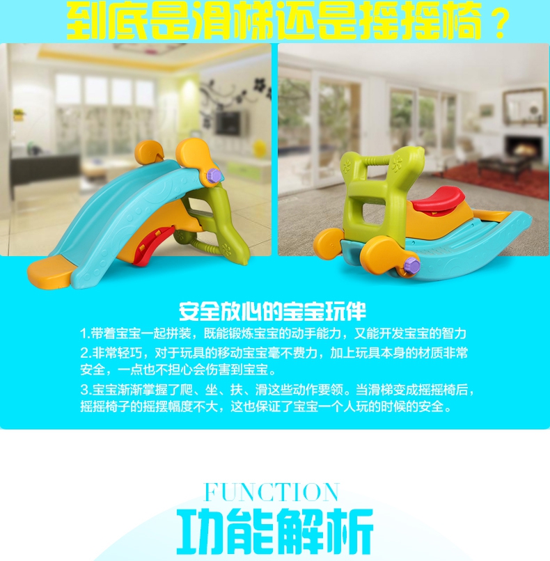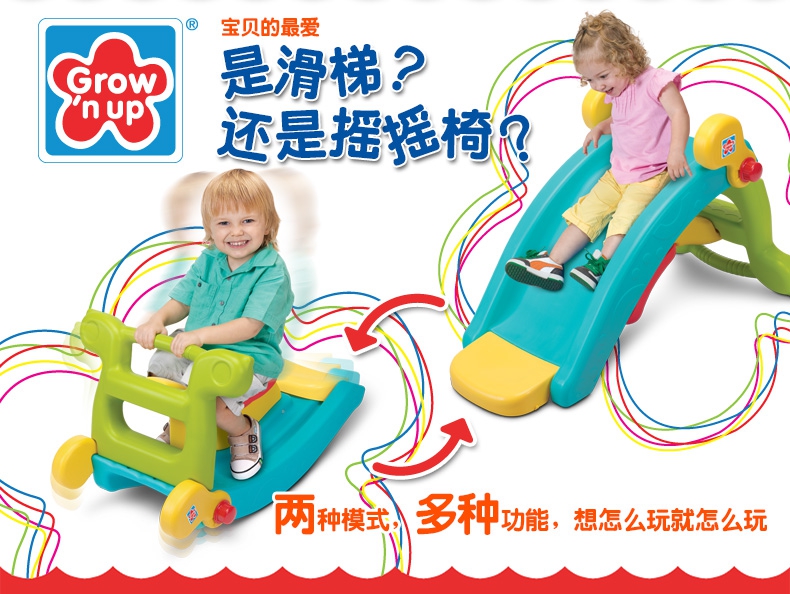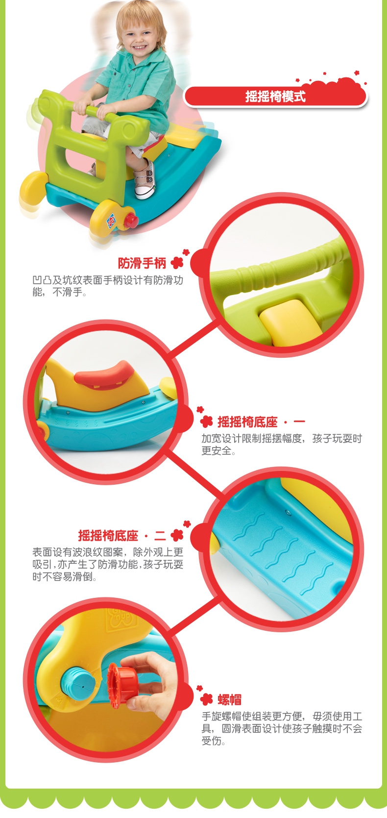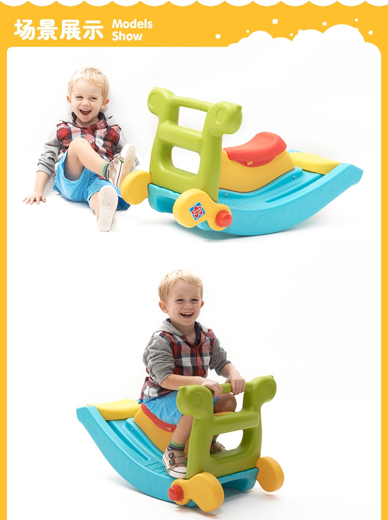 改变成摇椅后,宝宝就可以坐在上面玩耍啦。摇椅加宽的同时,