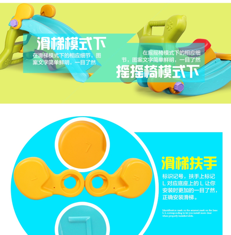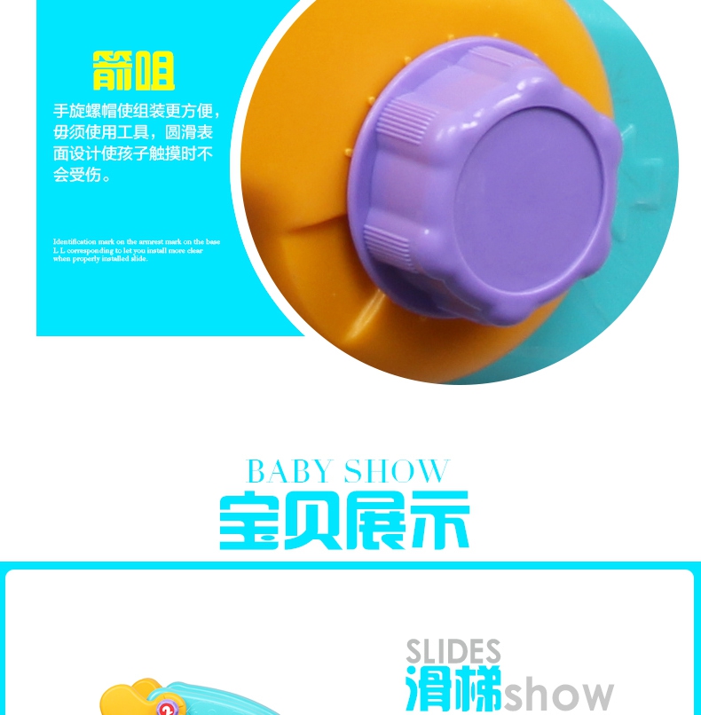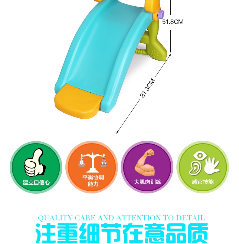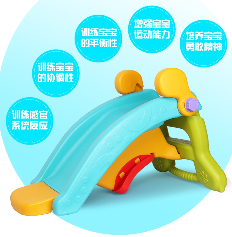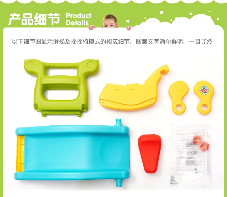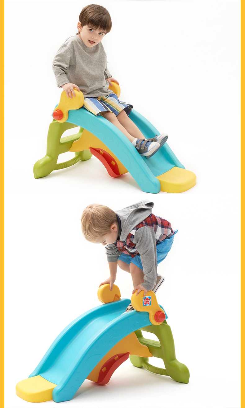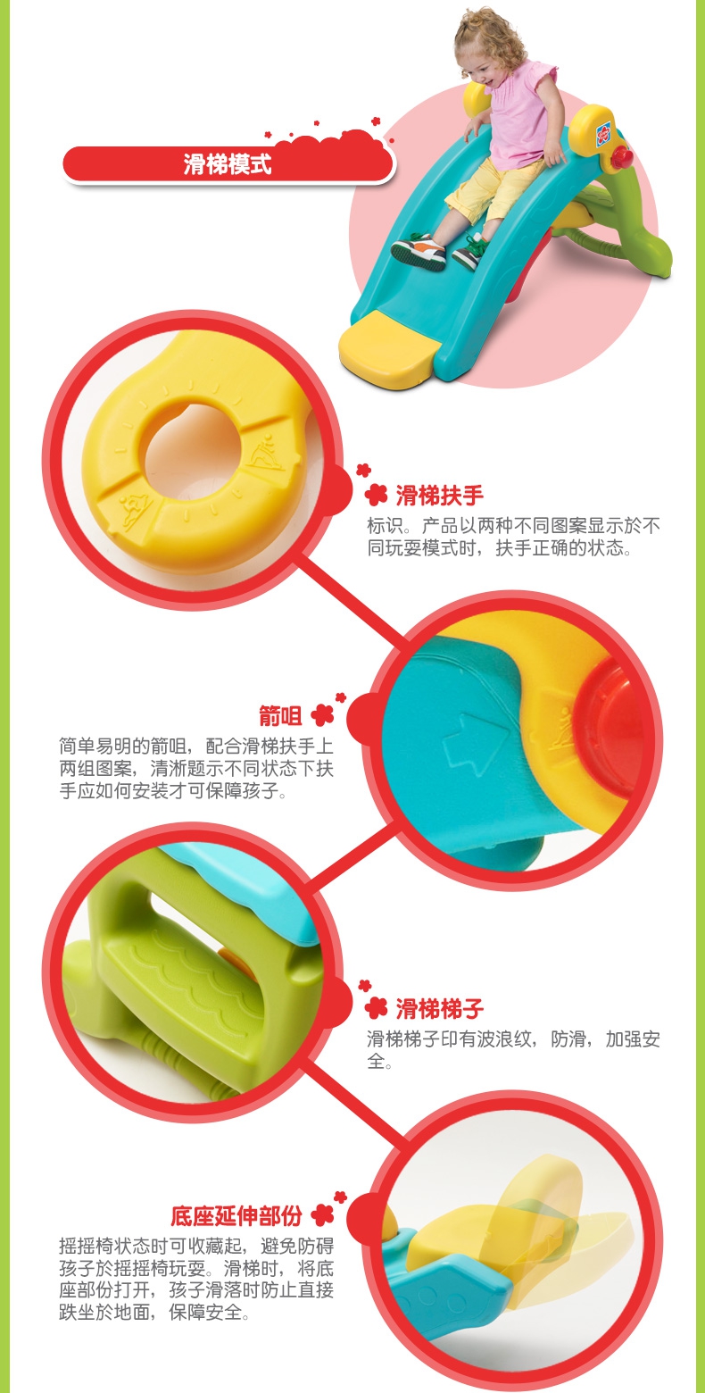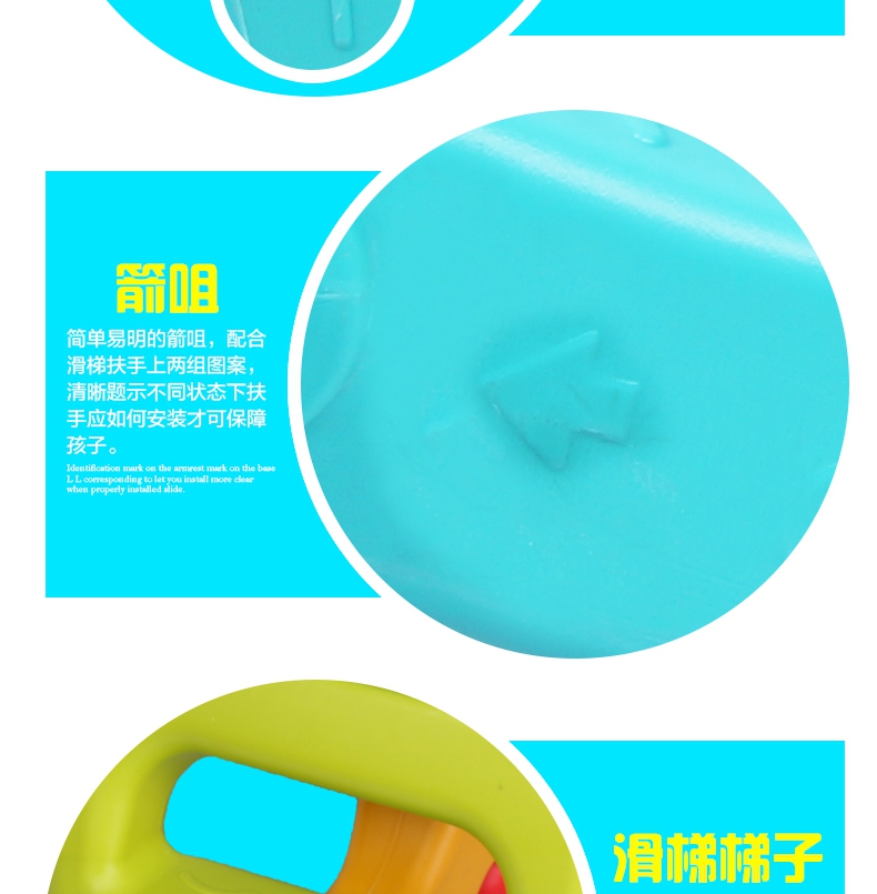 滑梯的小梯子上印有波浪纹,增加宝宝在玩耍过程中的安全性。