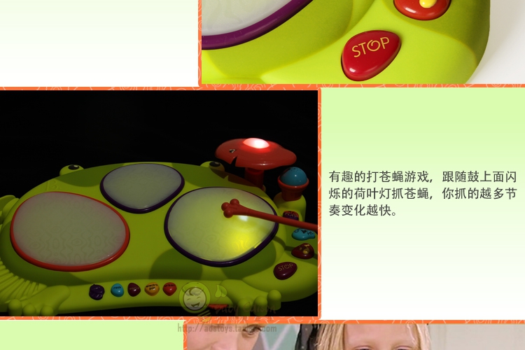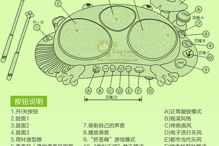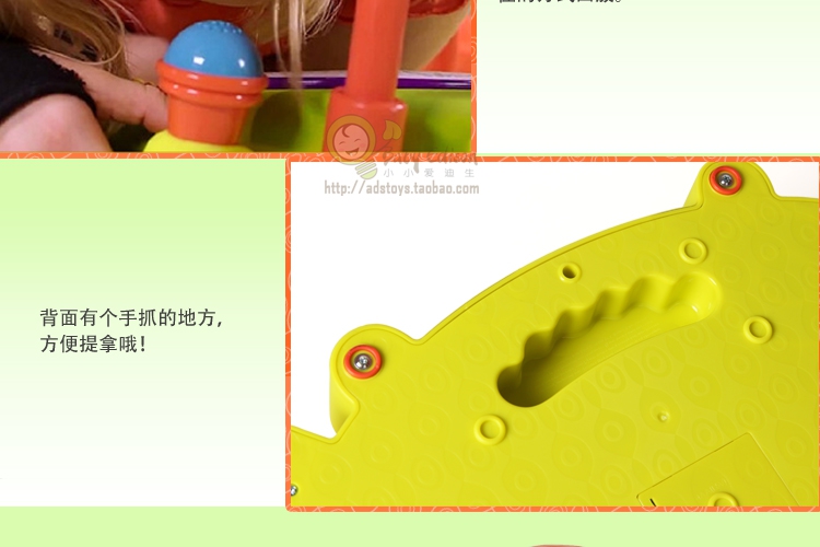 3.小鼓的背面有手抓的地方,方便宝宝们提拿。不用的