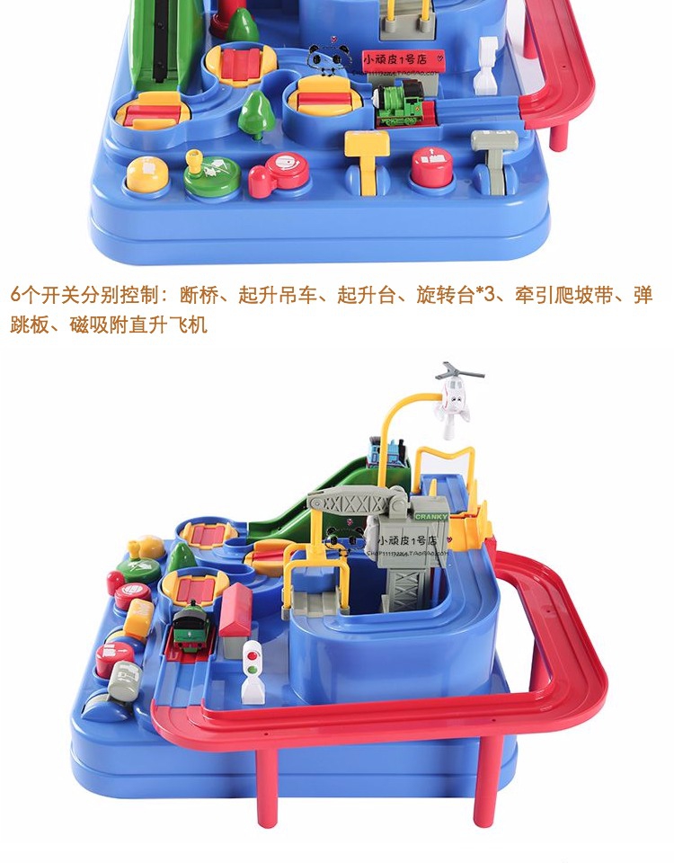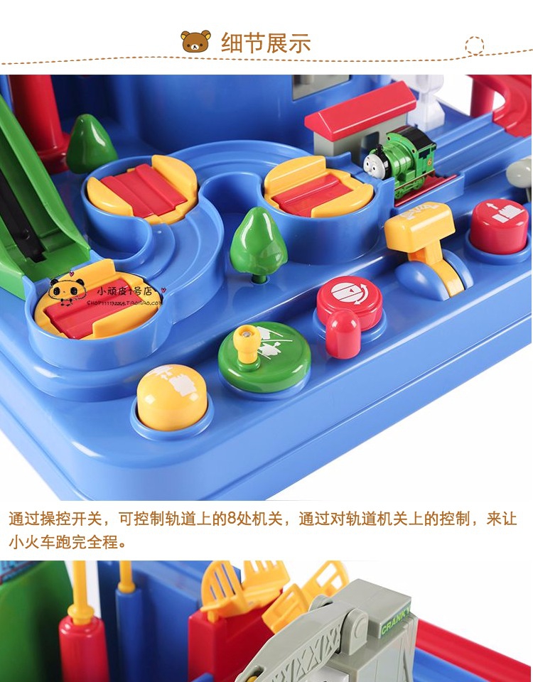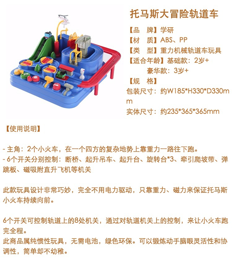 来让小火车跑完全程。此商品属于惯性玩具, 无需电池,绿