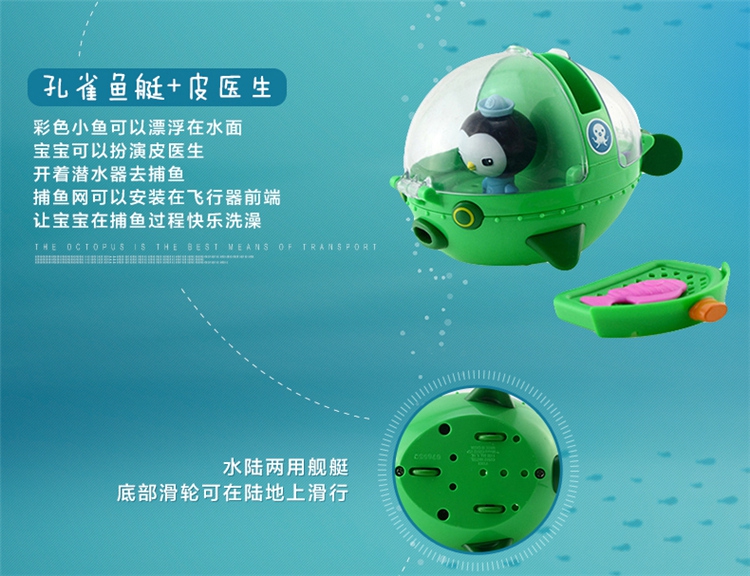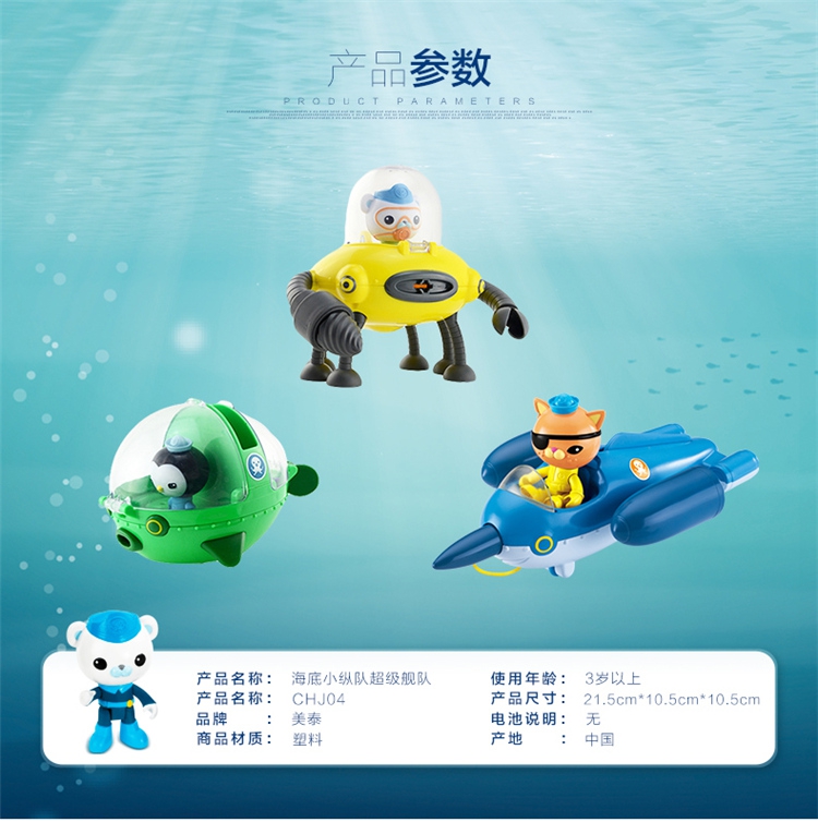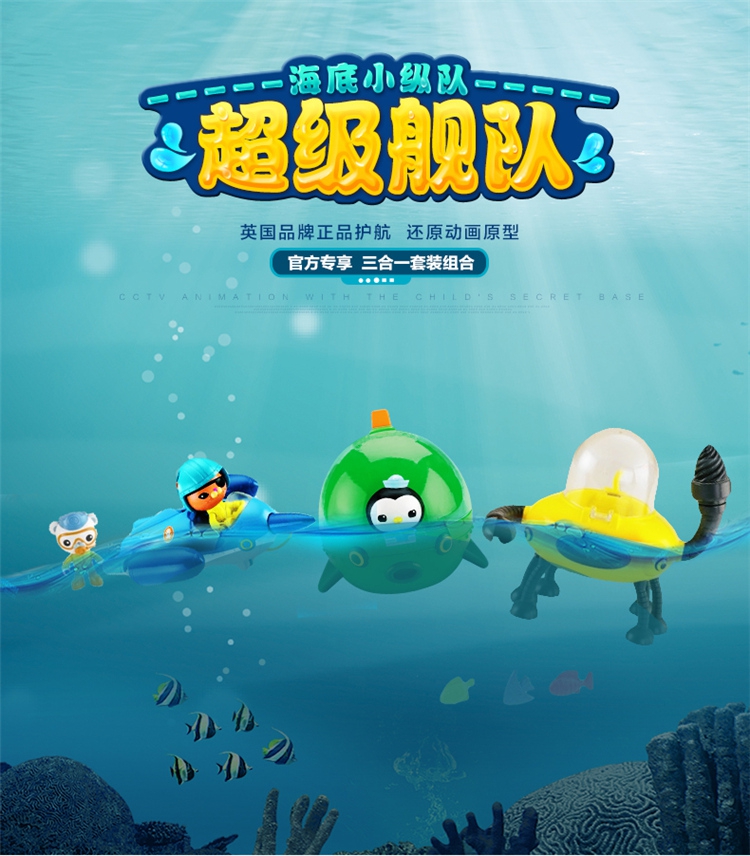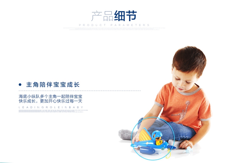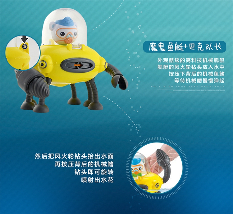 玩具特点:此款海底小纵队是宝宝洗澡的好伙伴,放入水内触发