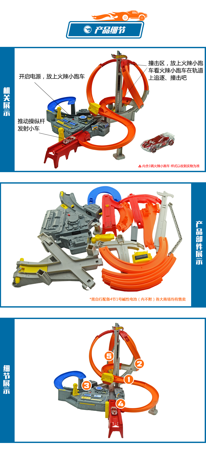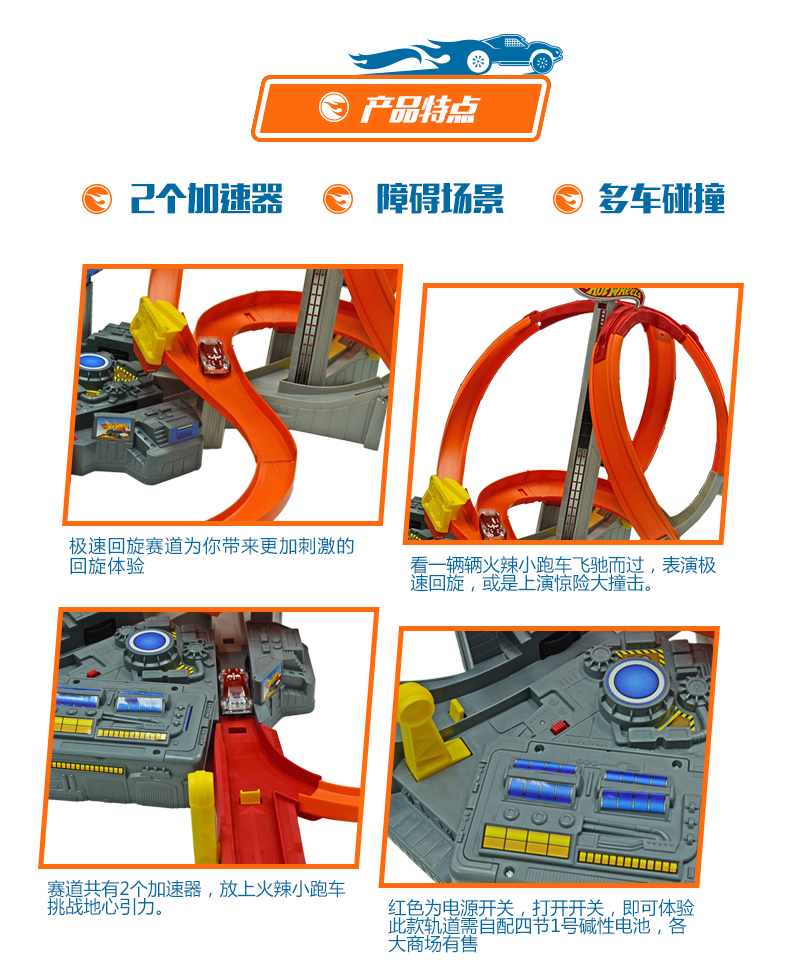 玩具特点:急速的回旋赛道打造孩子们的激情与速度,带有