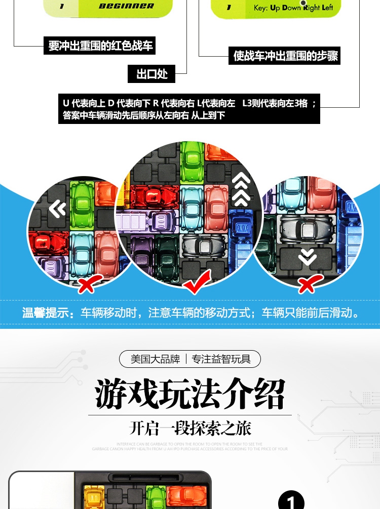 卡要求摆放好,正确滑动车辆使红色战车冲出网格。