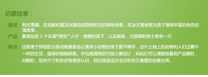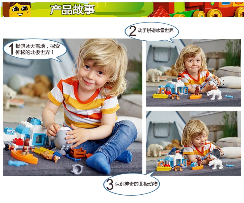 玩具特色:这款便于拼砌的北极动物套装会让喜欢小动物的