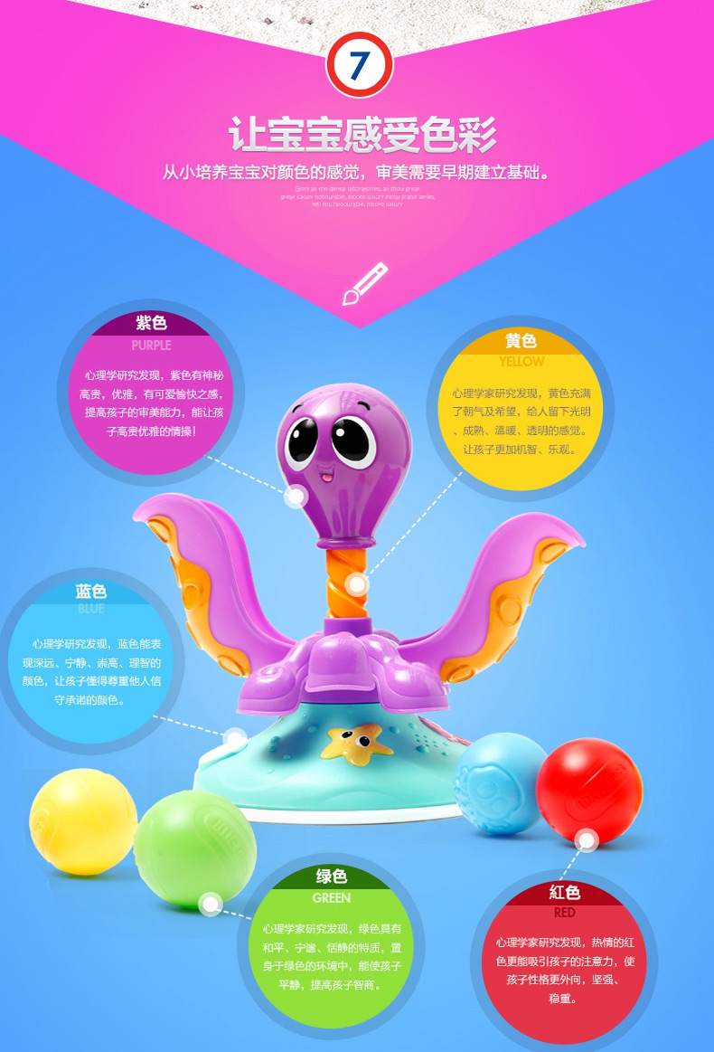 玩具特色:彩色部件辨认不同的颜色,训练宝贝的视觉,