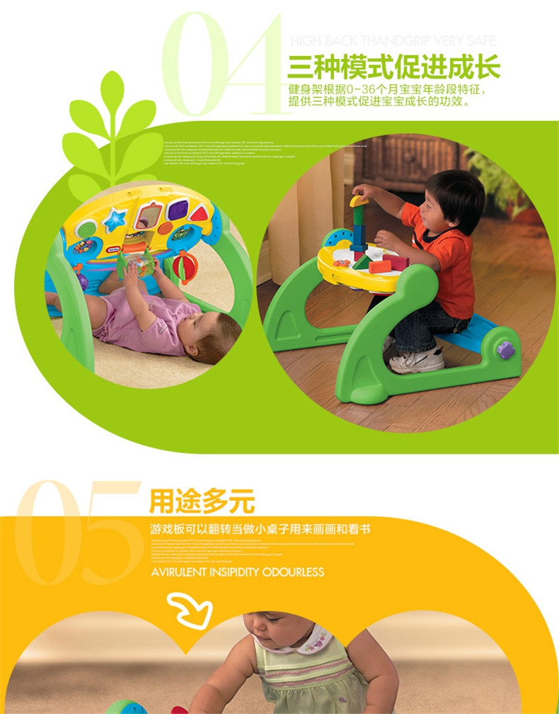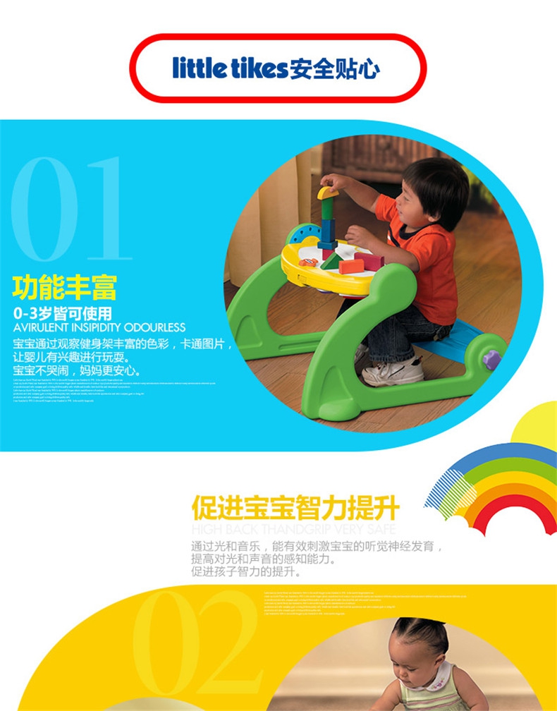玩具特色:健身架色彩丰富,卡通图片,让宝贝有兴趣