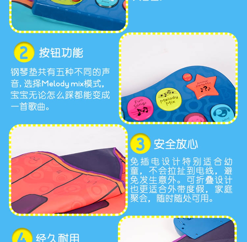 玩具特点:1、可同时打击四个音符