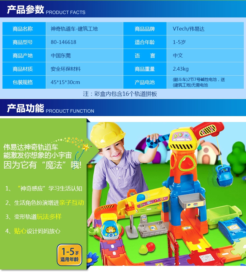 vtech伟易达神奇轨道车建筑工地