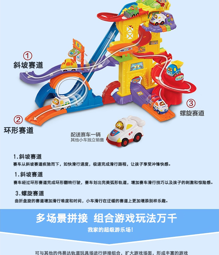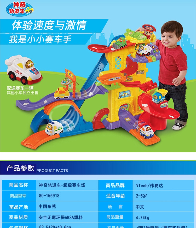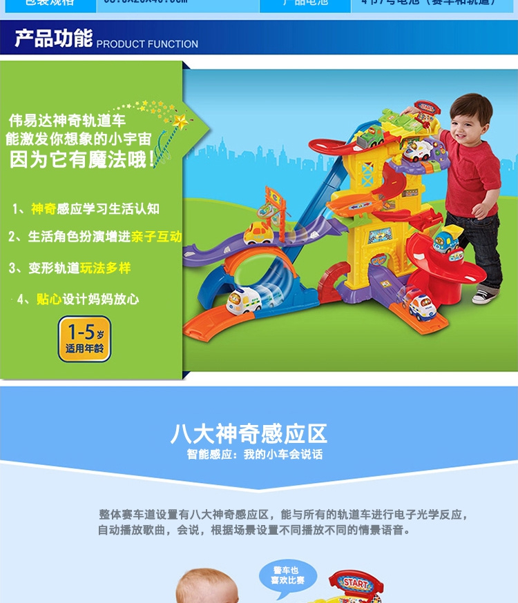 玩具特色:整体赛车道设置有八大神奇感应区,能与所有的轨