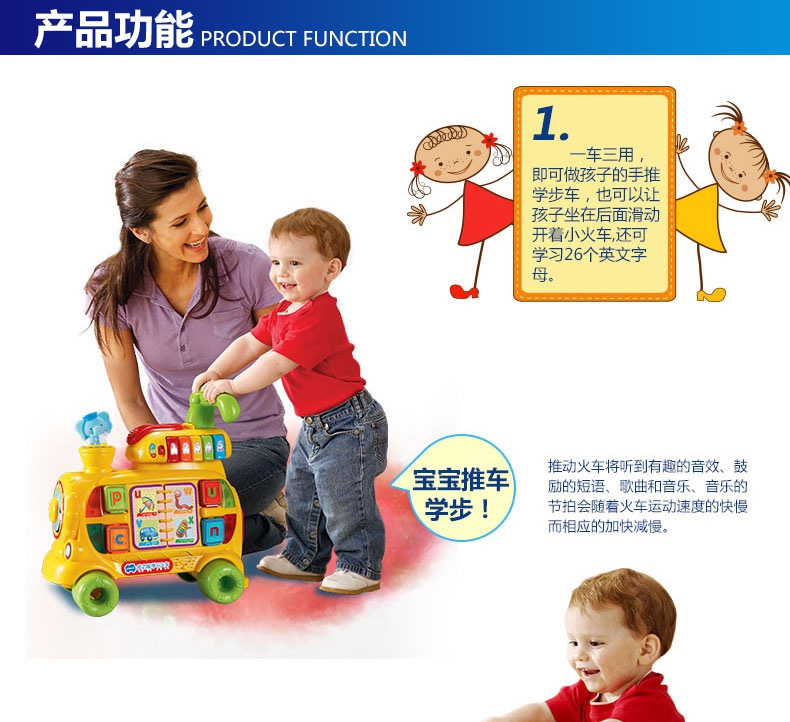 玩具特色:1、一车三用,即可做孩子的手推学步车,也可以