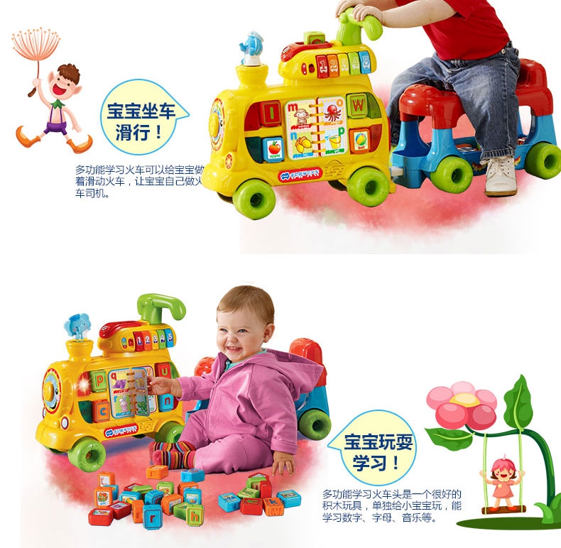 让孩子做在后面滑动开着小火车,还可以让孩子坐