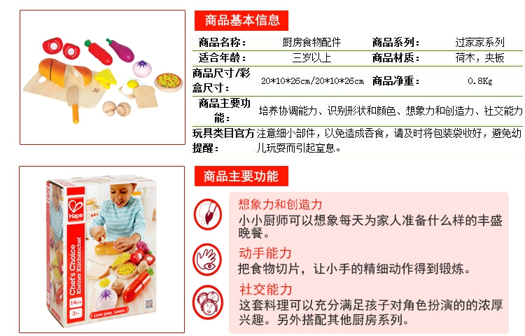 玩具特色:想象力和创造力----小小厨师可以想象每天