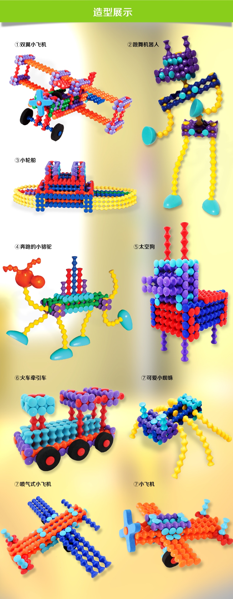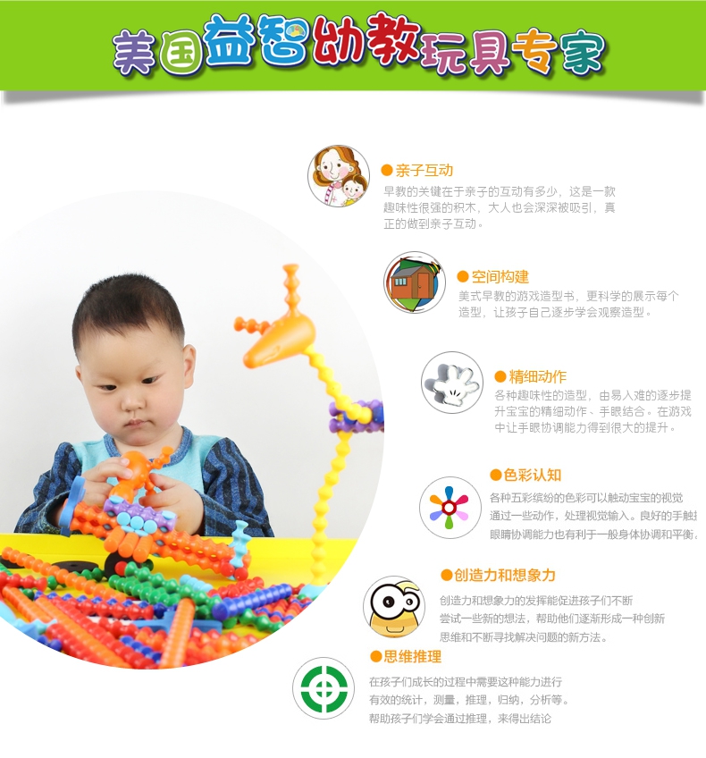 玩具特色:亲子互动、空间构建、精细动作、色彩认知、