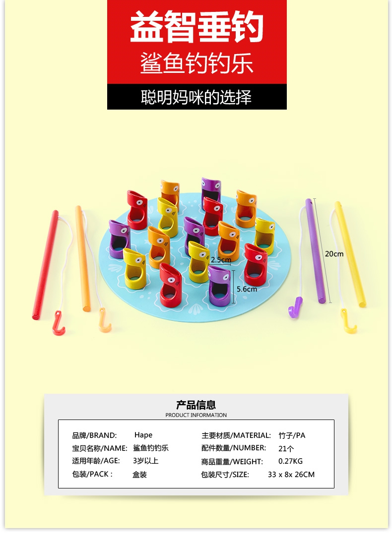 Hape 儿童小猫钓鱼玩具木制鲨鱼钓钓乐
