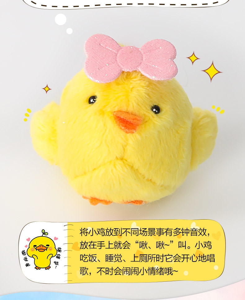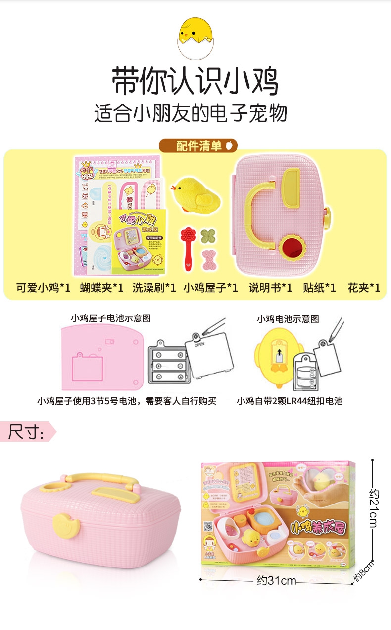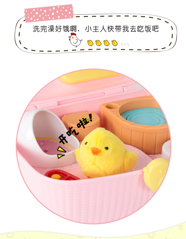 玩具特点:超萌电子宠物小鸡,将小鸡放到不同场景有多
