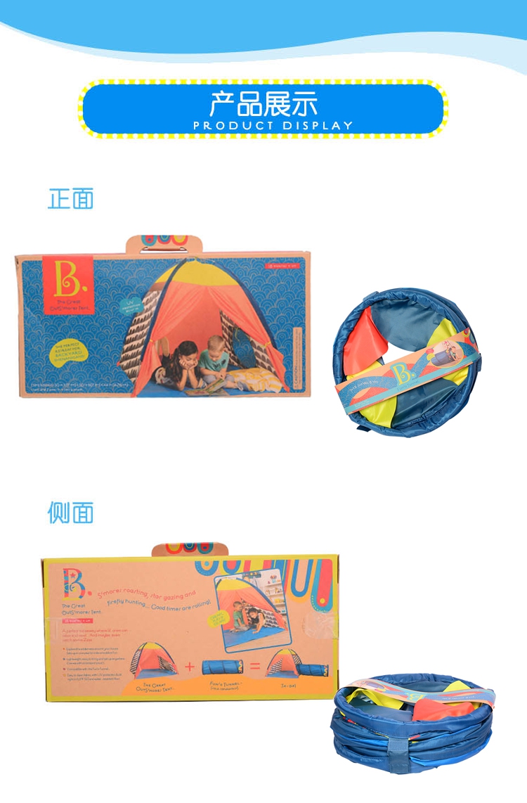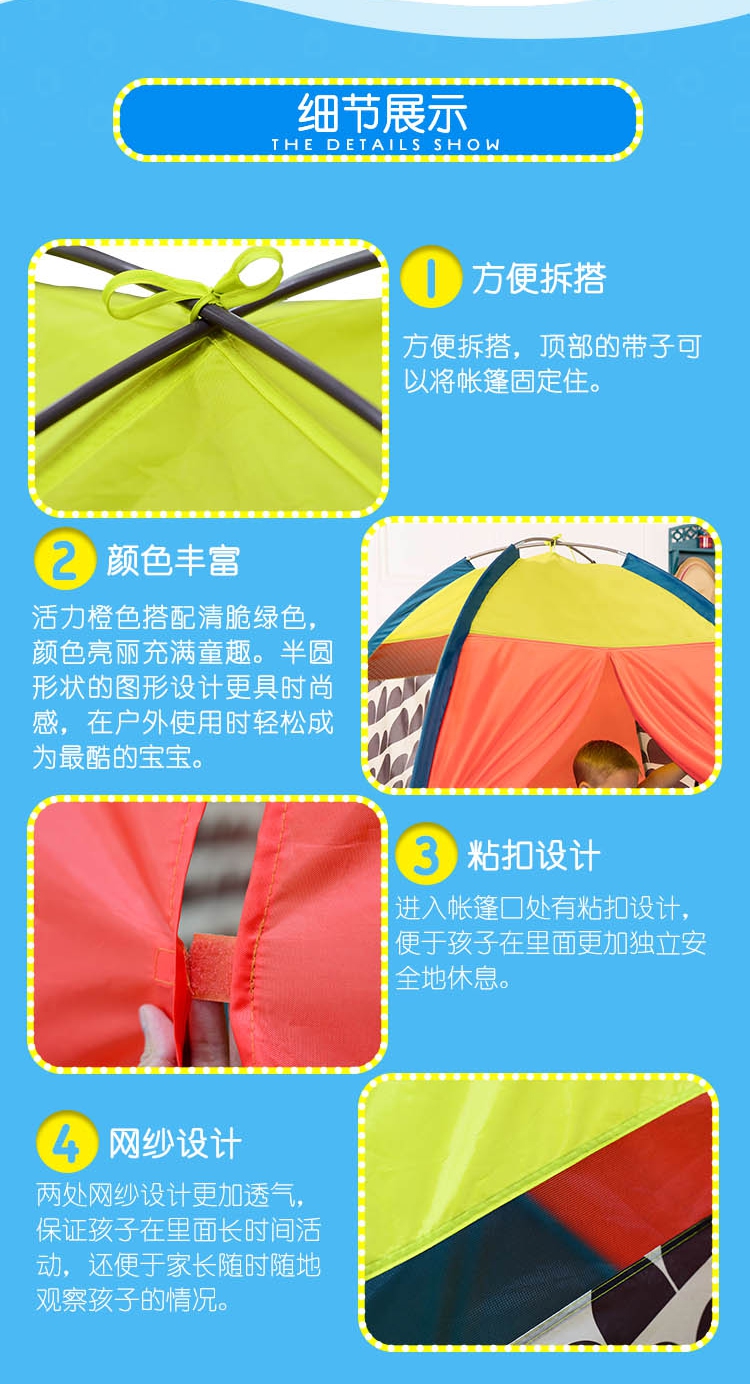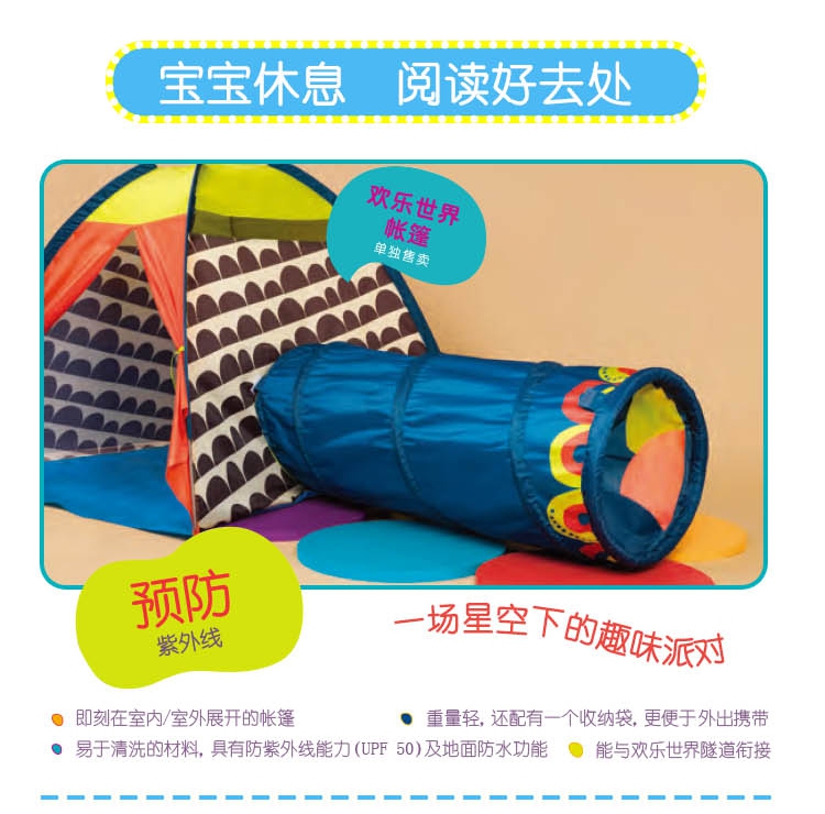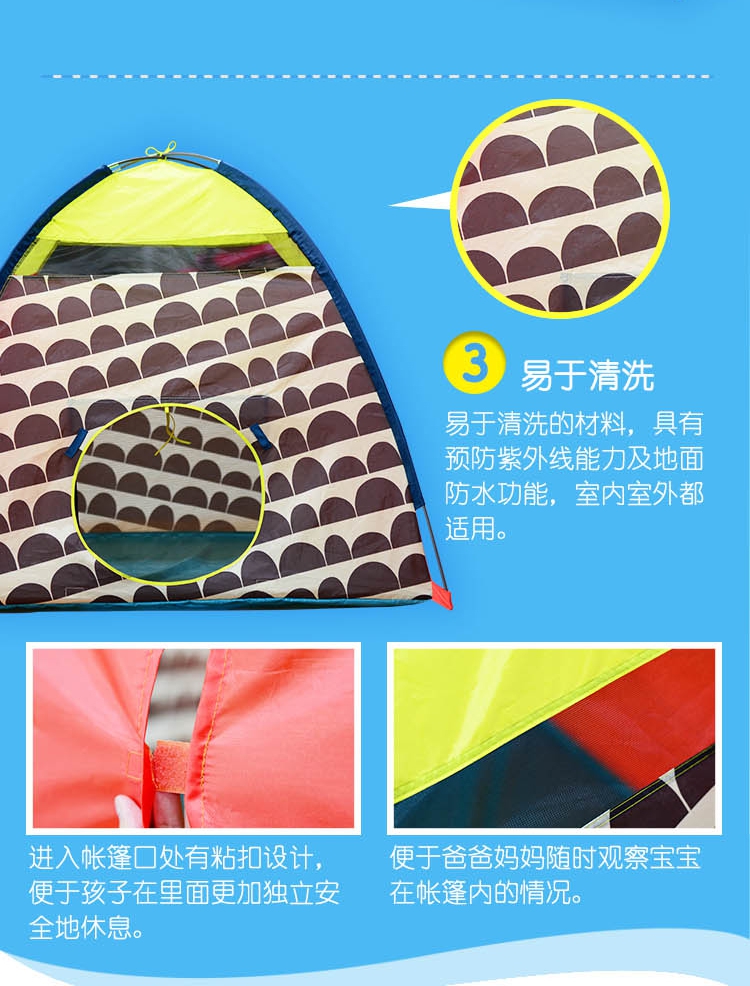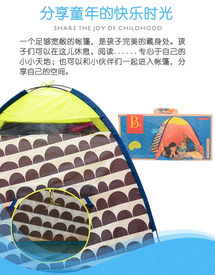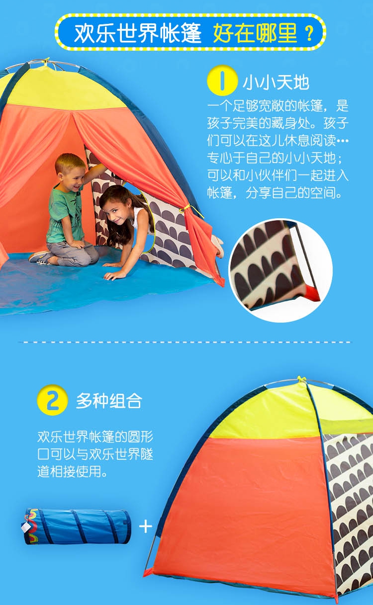 玩具特点:孩子可以在小帐篷内休息阅读、还可邀请小伙伴们一起进入玩玩具,