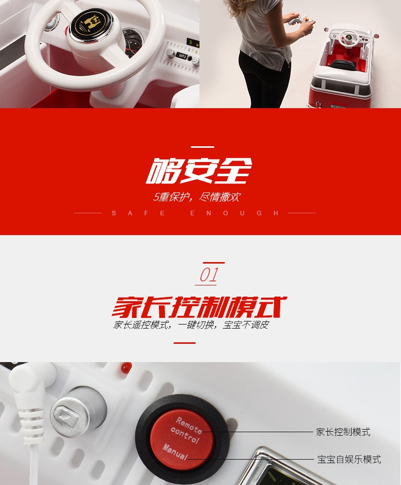 玩具特点:遥控、手动双模式操控,家长遥控模式一键