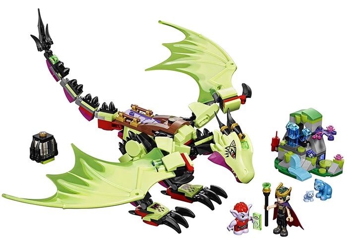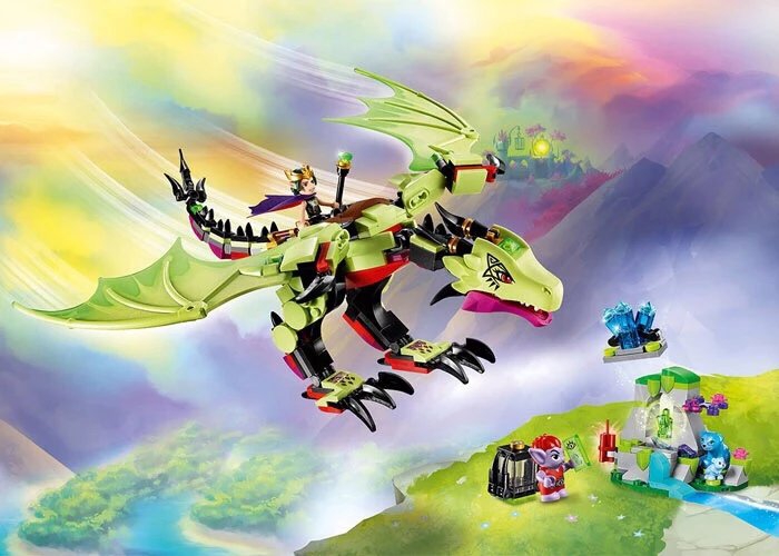 精灵怪国王的恶龙41183 颗粒数339适合年龄8-12 专柜价399跟妖精王一起骑在受他心灵控制的魔龙灰翼 Ashwing 背面飞往天上,搜寻更多水晶来增强入口的力量﹗利用灰翼的利爪来抓住跟里尔布鲁 Lil’ Blu 一起探索空山洞的熊妈妈布鲁贝利 Blubeary。接着让小妖精金伯林 Jimblin 使用炸药把部分洞穴炸开,寻找特殊水晶。把水晶储存在灰翼背后的笼子内并飞返妖精王的堡垒﹗• 包括精灵怪国王迷你玩偶人物,以及土龙飞翼、地精吉布林、布鲁贝和里尔布鲁。• 飞翼带有可活动的翅膀、可抓的翼爪、容纳精灵怪国王和吉布林空间以及水晶笼子。• 还包括侧面可容纳布鲁贝和里尔布鲁的水晶洞穴,带有可露出水晶的爆炸功能。• 把里尔布鲁藏在洞穴裡的秘密地点,用飞翼的爪抓住母熊布鲁贝。• 向吉布林发布指令,炸开洞穴,露出水晶。• 把水晶装在飞翼背上的笼子裡飞走。• 配件包括水晶、笼子、炸药、浆果、指令砖块和精灵怪国王的魔法棒。• 该套装提供适合 8-12 岁年龄段的拼砌和玩耍体验。• 其他淘气的灵怪可以通过选择乐高®精灵套装收集。• 飞翼超过 12 厘米高,31 厘米长,翼展 38 厘米。• 水晶洞穴超过 6 厘米高,8 厘米宽,5 厘米深。
