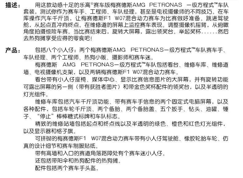 梅赛德斯AMG 一级方程式赛车队 75883