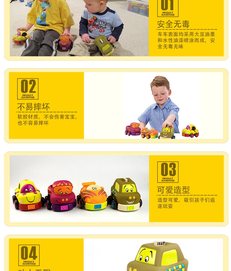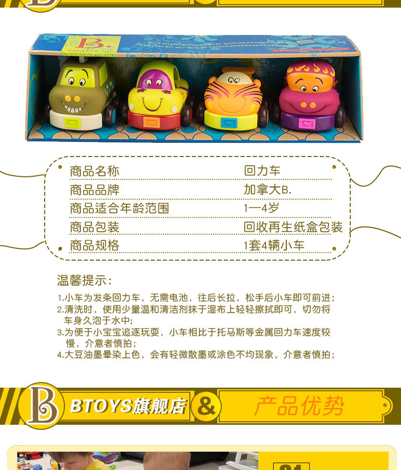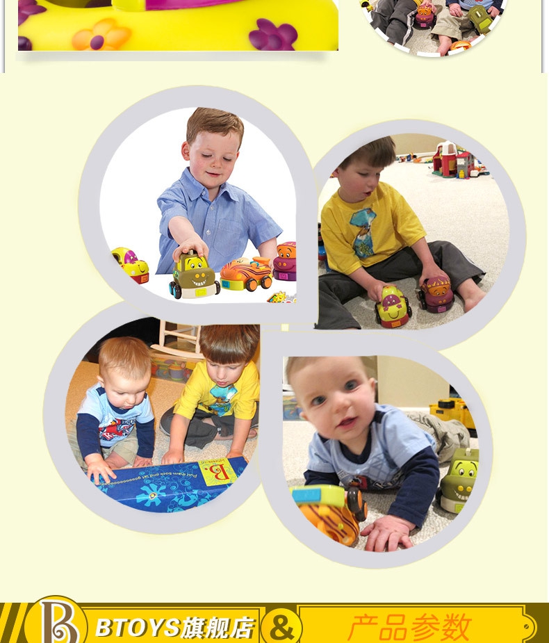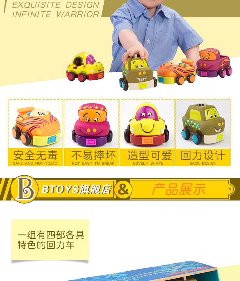 B.Toys回力车玩具车软胶儿童惯性小汽车套装