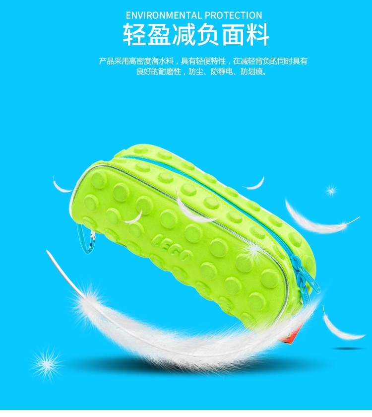 弹性EVA+莱卡环保材质、轻便耐摔;拉链开合 放取文具非常方便; 超大容量、内部多层设计、整理文具更轻松。