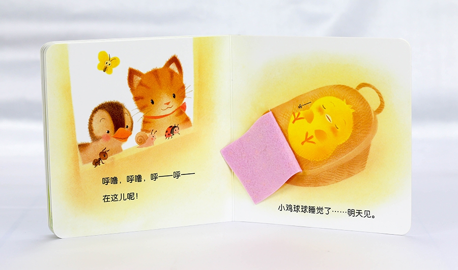 《小鸡球球触感玩具书》并非是单纯地“摸一摸”就结束的书,而是将多种触摸材料与工艺结合,设计孩子喜欢的游戏,在发展触感的同时,刺激其他感官,发展手眼协调性、观察力、语言表达力等综合能力的一套触摸书!