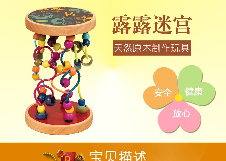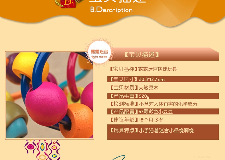 玩具特点:拨动小珠,小手沿着迷宫小经绕来绕去,促进宝宝的小手抓握能力和手眼协调性。