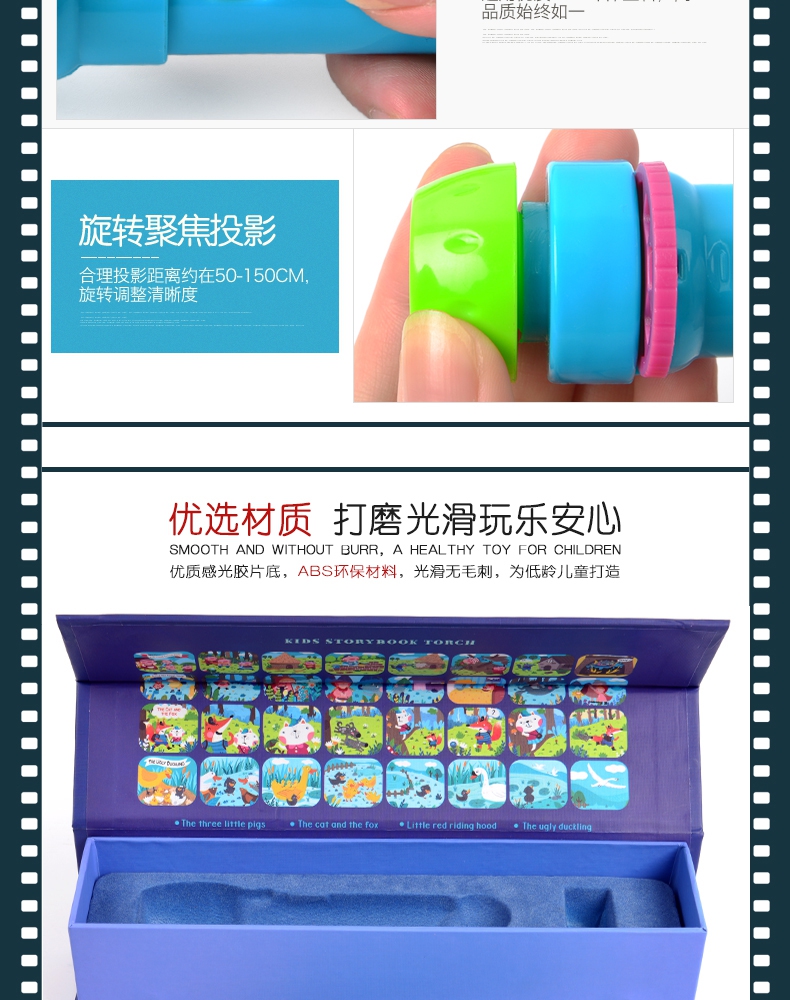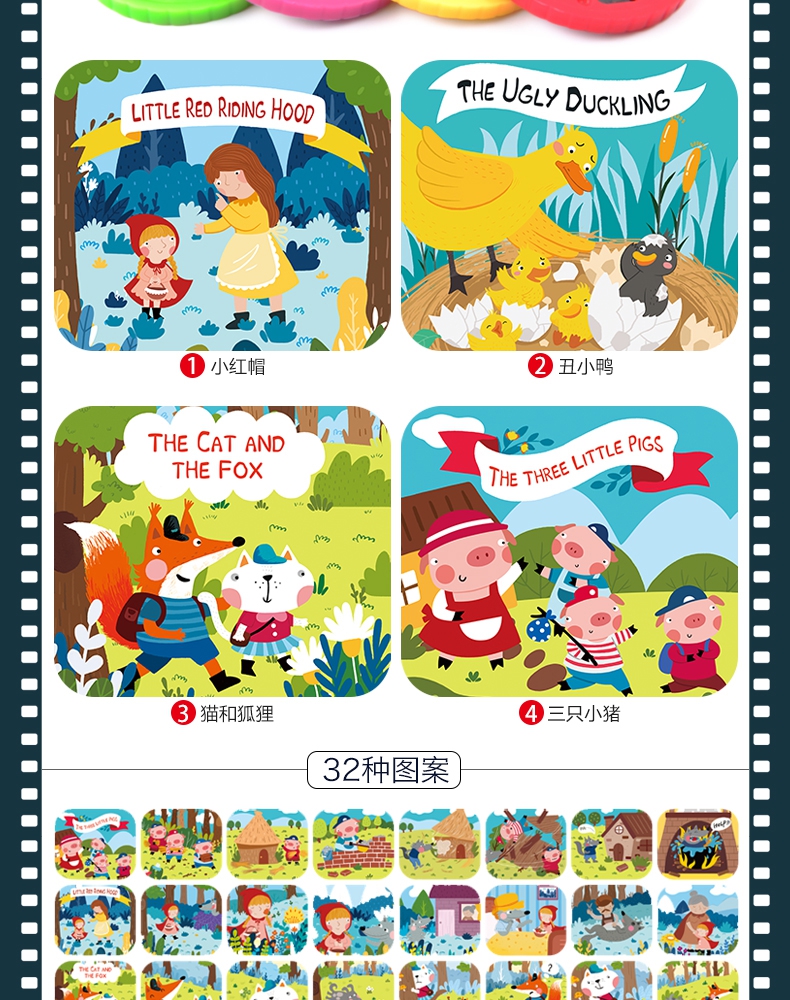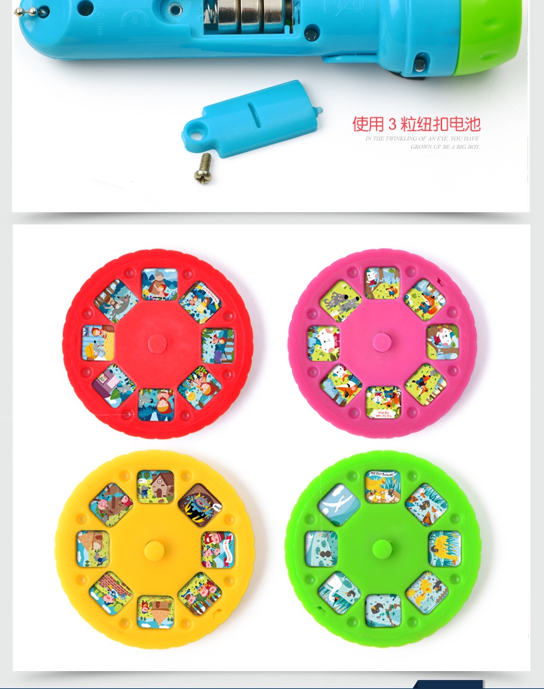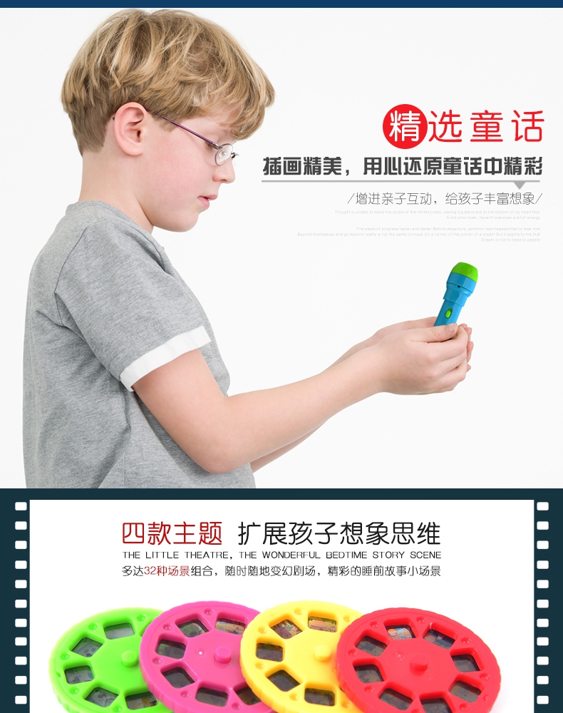玩具特点:小巧轻便手电筒投影仪,4大故事主题,32