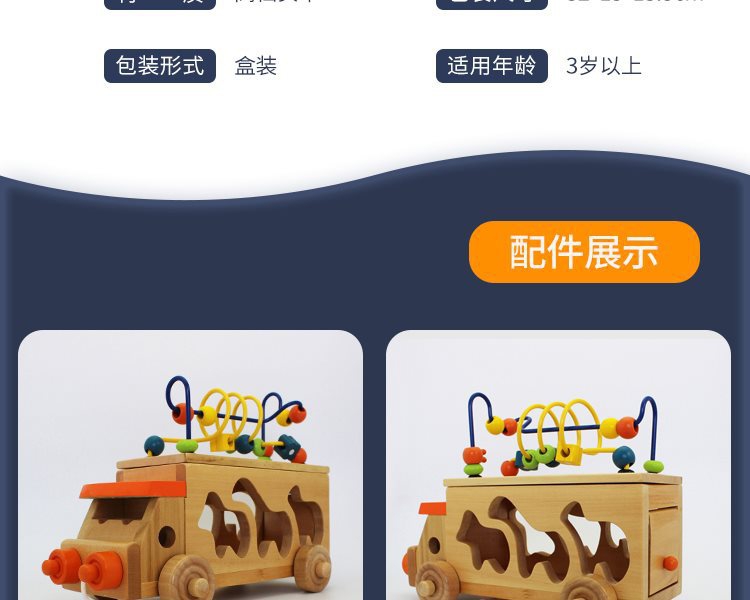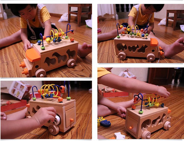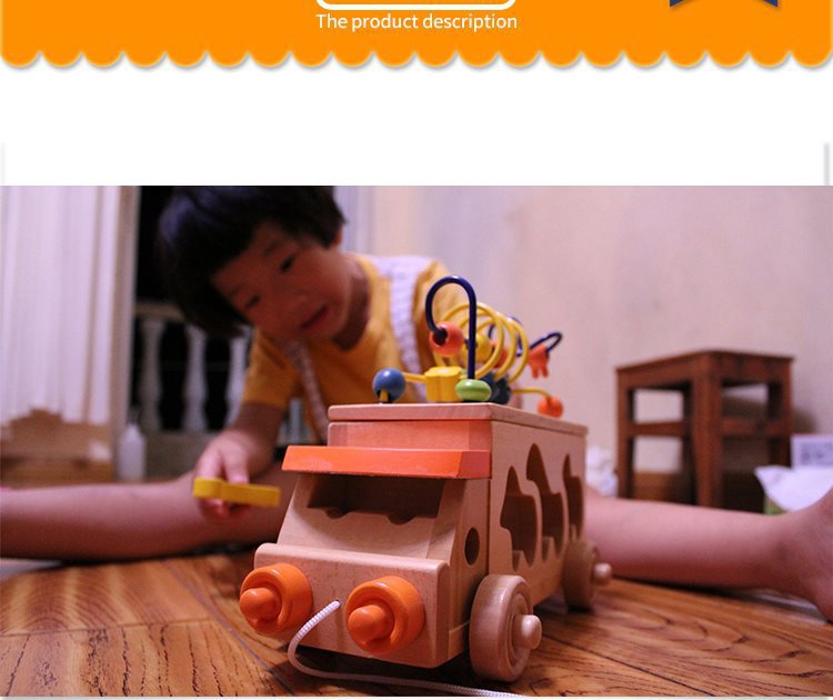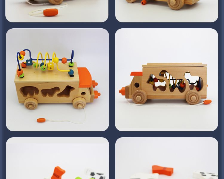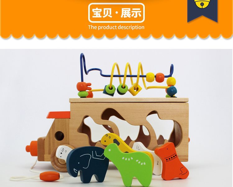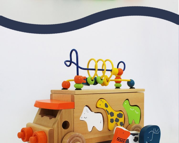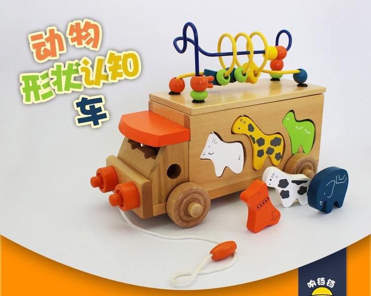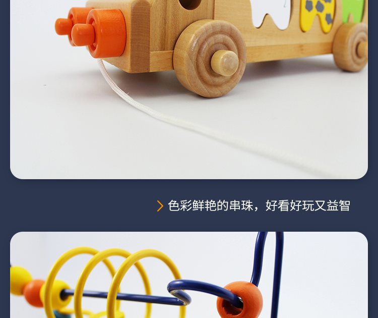 动物拖车绕珠木制玩具